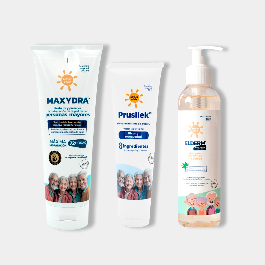 Este kit ha sido especialmente diseñado para cuidar la piel madura, brindando hidratación profunda, solución antipicor y limpieza suave. Contiene tres productos esenciales para una rutina diaria de cuidado personal.