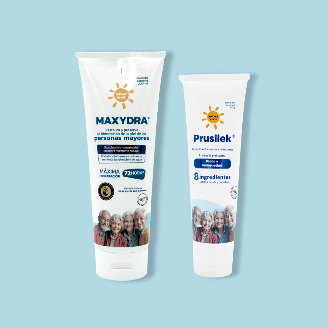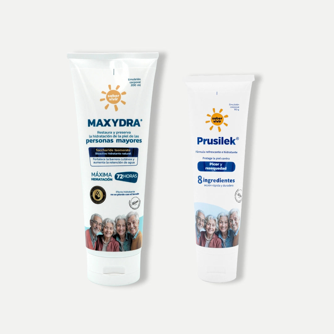 Diseñado para mejorar el picor y la resequedad en la piel de las personas mayores. Gracias a sus dos poderosos productos: