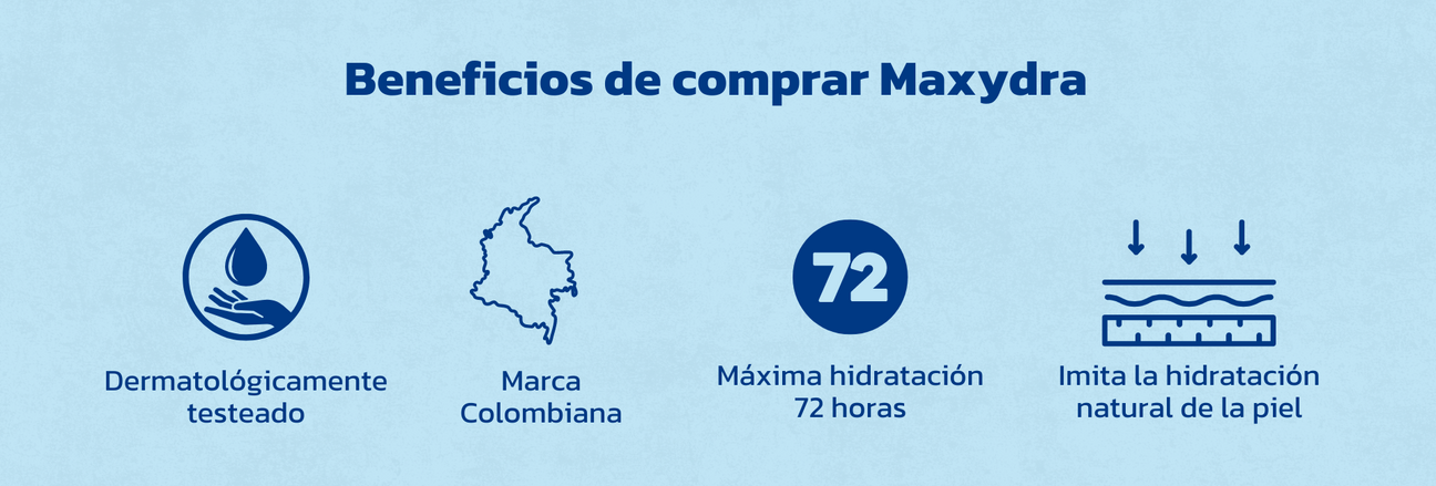 - Aplique diariamente en las áreas del cuerpo que necesite hidratar y repita la aplicación las veces que sea necesario. El uso frecuente de MAXYDRA® ayuda a mantener la piel suave y tersa.